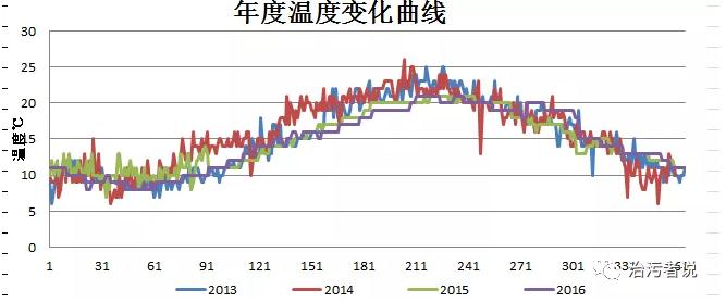 我國地理緯度跨度較大,相當大的一部分區(qū)域都在北緯23.5°~66.5°的北溫帶區(qū)域內(nèi),這個區(qū)域最大的特點就是太陽直射點在南北回歸線之間做回歸運動,受到太陽輻射的影響四季的氣溫變化分明,因此在我國大部分地區(qū),一年的春夏秋冬的周期性交替是每年必然產(chǎn)生的結(jié)果。在這些區(qū)域內(nèi)的污水廠的水質(zhì)如果要穩(wěn)定達標的運行,必須針對四季變化進行工藝管理。