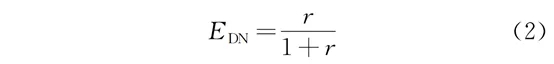 生物池內(nèi)回流比大小直接決定脫氮效率。在假設(shè)生物硝化及反硝化效率均為100%的前提下,脫氮效率隨著內(nèi)回流比的增大而增大,脫氮效率edn計(jì)算見式(2):