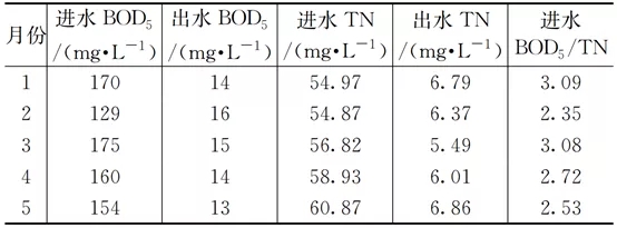 然而在實(shí)際運(yùn)行過程中,受回流液中do濃度的影響,反硝化效率很難達(dá)到理論值。如表2所示,再生水廠2021年1月至5月進(jìn)水bod5/tn的平均值為2.75,低于2.86的理論值。日常該水廠生物池內(nèi)回流比為350%左右,按照式(2)計(jì)算理想狀態(tài)下的脫氮效率為78%,在未投加外加碳源的情況下生物系統(tǒng)實(shí)際反硝化脫氮效率為77%(見表3)??紤]剩余污泥排放中攜帶的氮含量,進(jìn)水總氮平均去除率為89%。