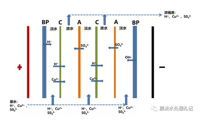 含有高濃度金屬離子的廢水系統(tǒng),對電滲析而言,往往是非常頭疼的事情。一方面部分金屬離子在系統(tǒng)中容易形成膠體,或者運(yùn)行過程中濃水和極水容易結(jié)垢,造成設(shè)備污堵;另一方面多價(jià)金屬離子容易進(jìn)入極水室,從而在陰極室被還原成金屬單質(zhì),從而降低電極板處理效率,且不易恢復(fù)。