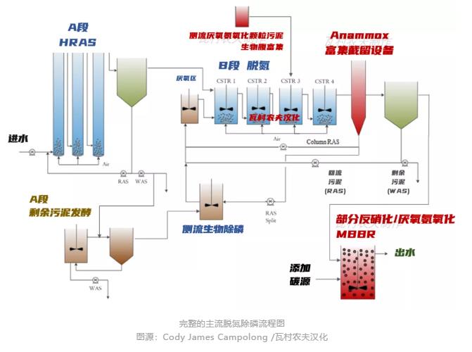 到了2019年,他們?cè)诹硪蛔鬯畯S——約克河污水廠進(jìn)行測(cè)試,將它的一個(gè)后置反硝化濾池改造成一個(gè)基于mbbr移動(dòng)床生物膜反應(yīng)器工藝的pdn/a反應(yīng)系統(tǒng)。在他們看來,這算是第一個(gè)完成主流anammox菌氧化進(jìn)水氨氮的案例,并取得了成功的結(jié)果,因此hrsd計(jì)劃將此工藝技術(shù)納入即將在詹姆斯河污水廠(james river wwtp)開展的脫氮除磷升級(jí)改造工程中。這次百萬美元的研究項(xiàng)目就是要解決pdn/a工藝在設(shè)計(jì)和運(yùn)行方面剩下的一些未知問題。