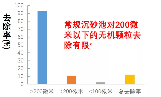 除了上述的問題以外,還有些地區(qū)的沉砂池根本攔截不住砂粒,但是生物池內(nèi)的污泥濃度中mlvss占比卻極低,這主要是因為現(xiàn)階段標準設(shè)計的沉砂池都是以去除0.2mm的砂粒為主要去除對象的,如果進水的無機砂粒粒徑小于0.2mm,相對密度低于2.5的,就不能被沉砂池有效的去除,造成生化段活性污泥的無機成分增多。