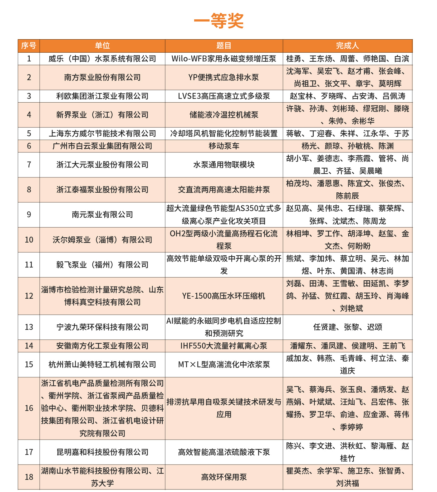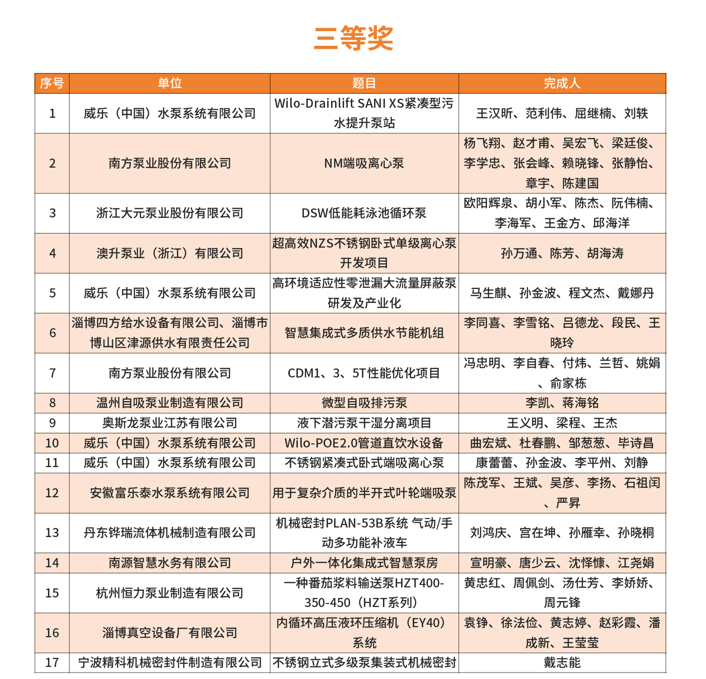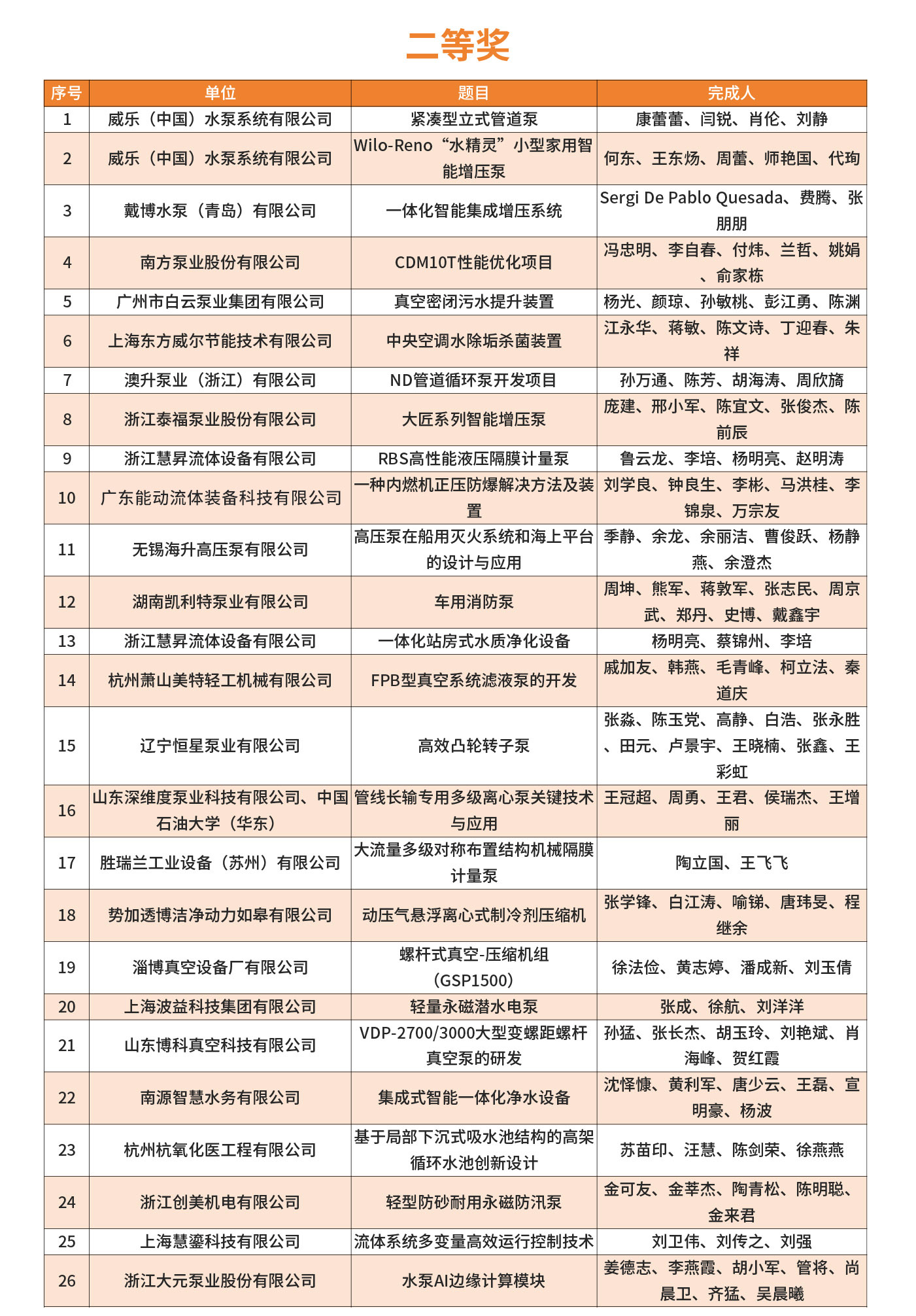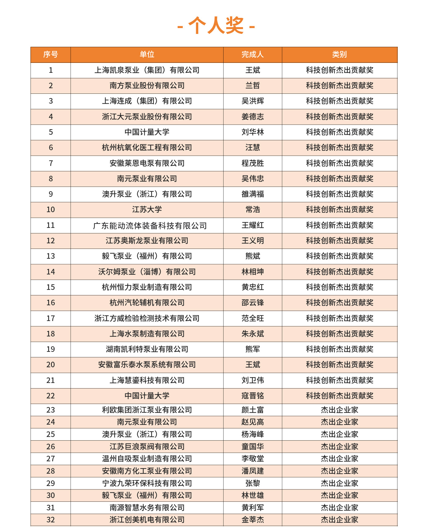 2025年第四屆FLOWTECH CHINA全國流體裝備技術(shù)創(chuàng)新獎經(jīng)過10位嘉賓的專業(yè)評審,共評選出了威樂、南方、利歐、新界、白云、沃爾姆、澳升等在內(nèi)的一、二、三等獎,凱泉泵業(yè)王斌、南方泵業(yè)蘭哲、利歐集團顏土富等32位個人獎。